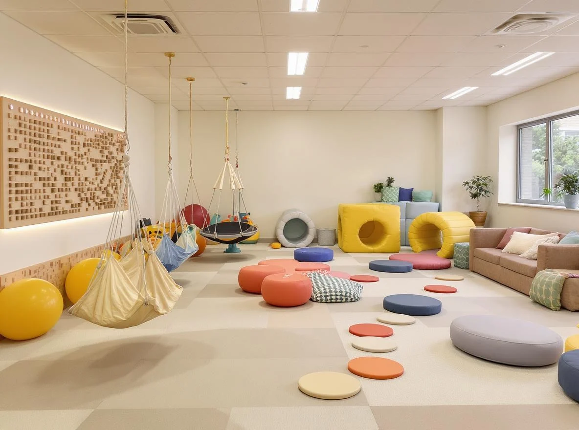 En resumen, una sala de integración sensorial debe ser un espacio flexible, seguro y estimulante, equipado con materiales que permitan adaptar las actividades a las necesidades individuales de cada niño, promoviendo así su desarrollo integral y bienestar.